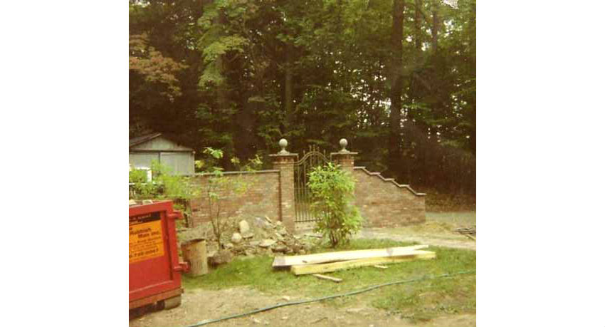 Working with the home owners design, we constructed a new brick gated entry out of vintage, used bricks, as seen in the photo above. The brick piers support a heavy, iron gate. We welcome your designs and will work with you to produce a result that is both beautiful and durable.