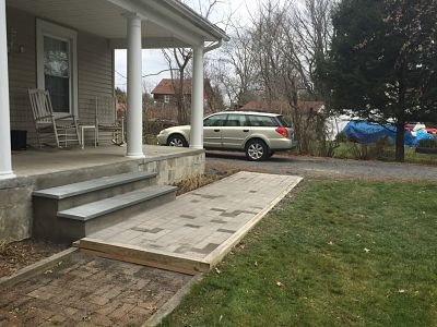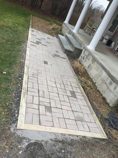 My plumbing Contractor needed some restoration work at his rental home. The stoop needed rebuilding and tread replacement, and the brick sidewalk had heaved and needed to be re-set.