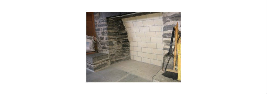 Fireplace restoration, chimney tuckpointing and copper flashing. New firebrick boxes were laid, chimney dampers were supplied and installed. As seen in the photo above, the main fireplace in the livingroom.