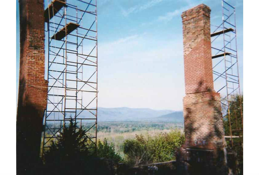 Damaged by fire and long neglected and left to the elements, the twin brick chimneys and fireplaces of the historic Leeds Castle needed to be completely rebuilt to be returned to service. The fireplace boxes were rebuilt and refurbished as needed, as seen in the above photo. Chimney sections for some fireplaces had to be demolished and rebuilt, exactly reproducing existing brick bonds and patterns.